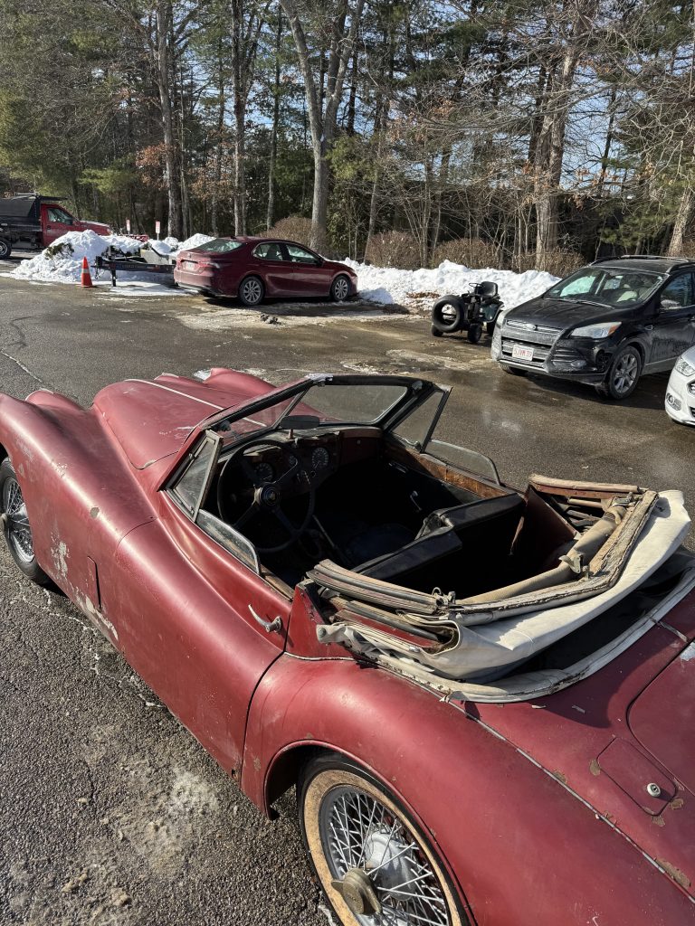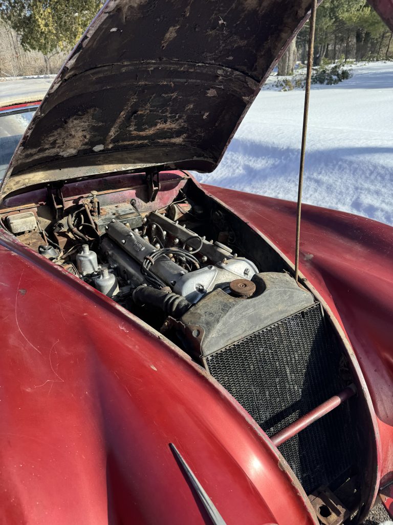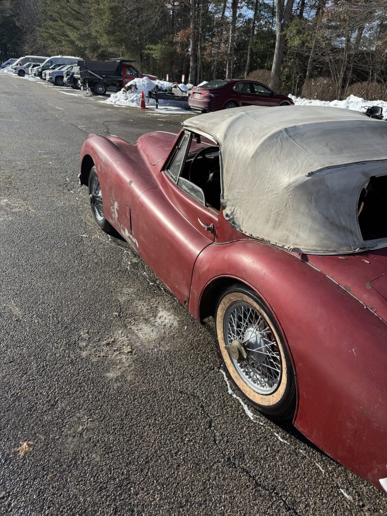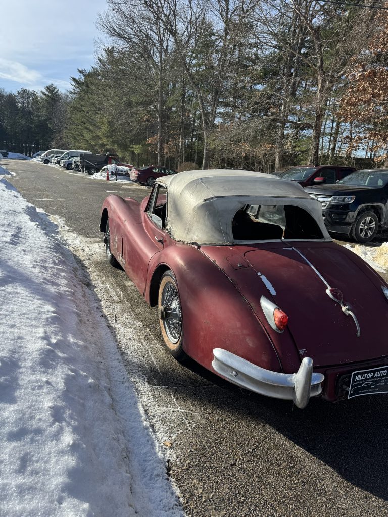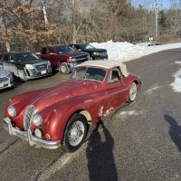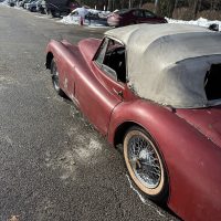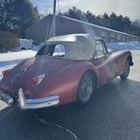 Being sold for restoration is this 1957 fully matching number XK140MC drop head coupe with the desirable 4 speed manual gearbox. This car has the C-type head. The only thing we see missing is the tool roll and jack. We believe the original color was British Racing Green. Car comes with a clear title and is being sold at an affordable price.