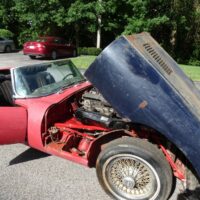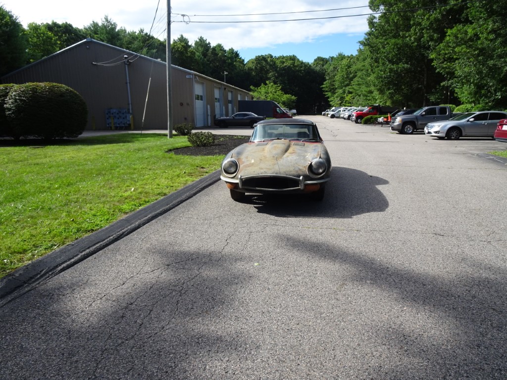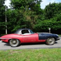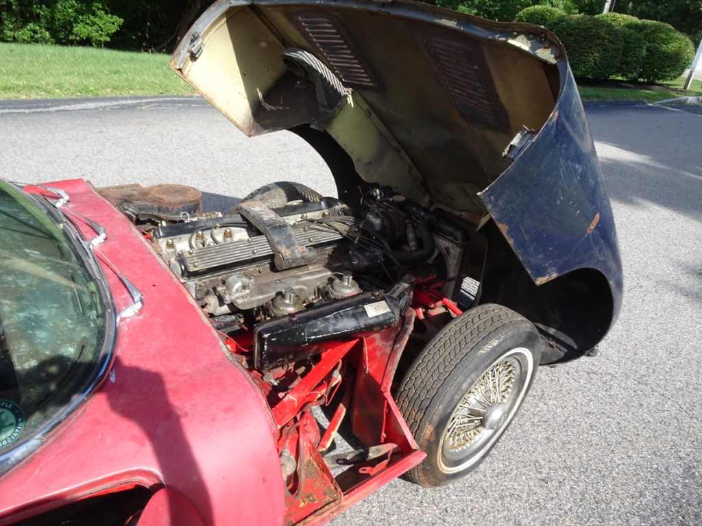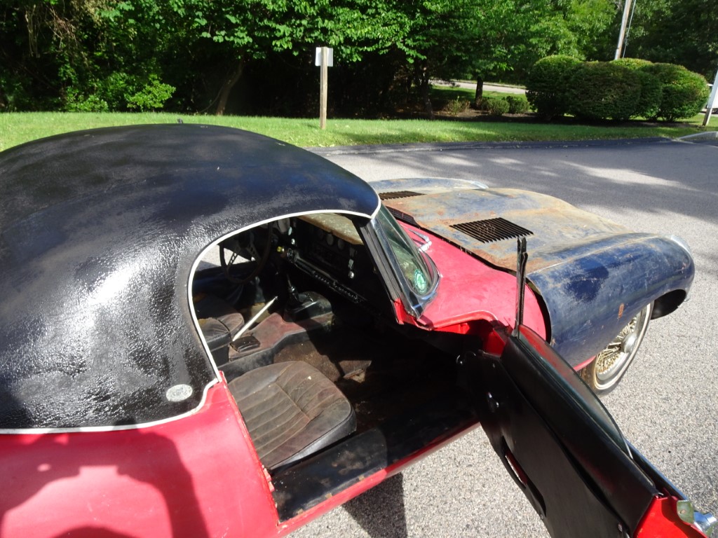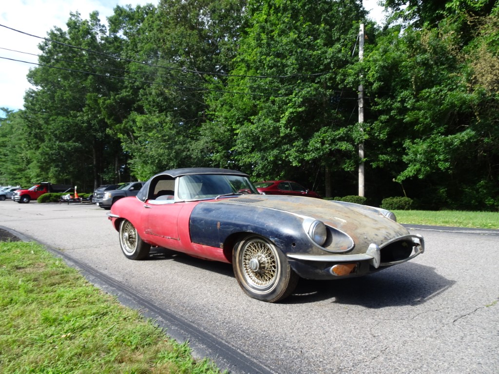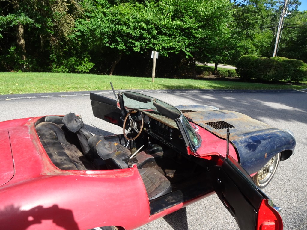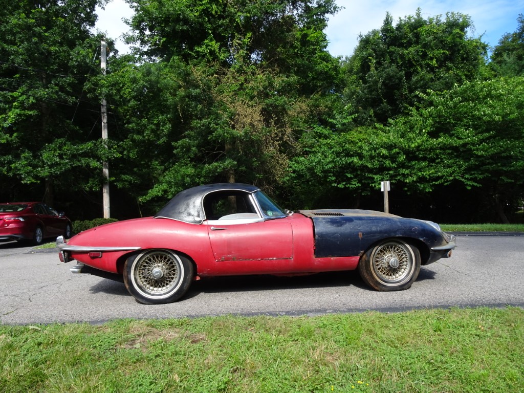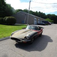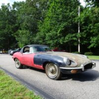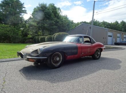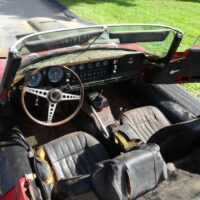 This 1969 Jaguar E-type roadster is a matching numbers car being sold for restoration. The engine is free and the car rolls and steers so it can be transported. The car comes with the Jaguar Heritage Certificate and a clean title.
